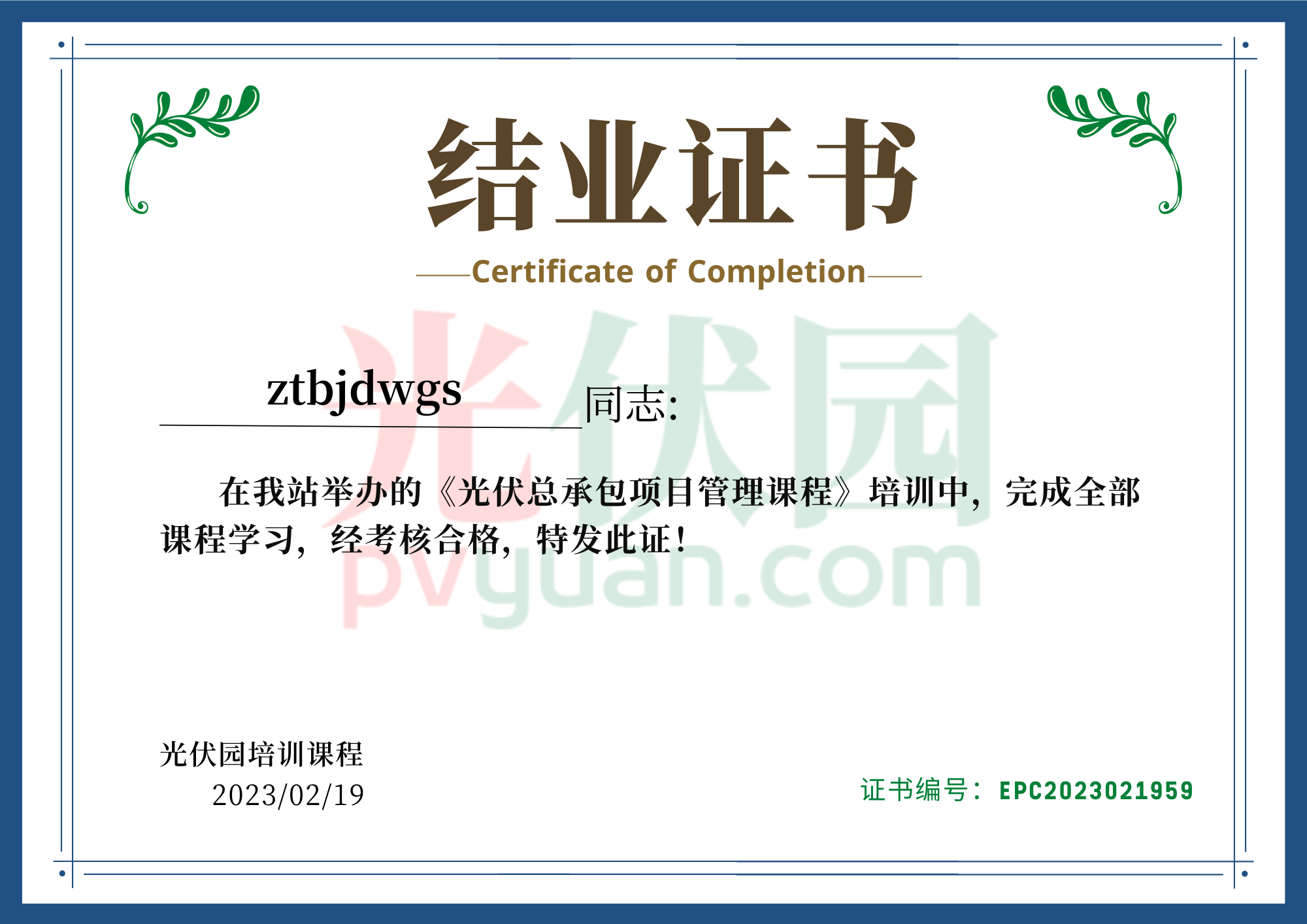 證書編號(hào):EPC2023021959