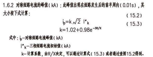 (1)變壓器低壓母線側(cè)的三相短路電流計算、單相短路電流、峰值系數(shù)K,沖擊電流ip及熱穩(wěn)定性核算結(jié)果如下: