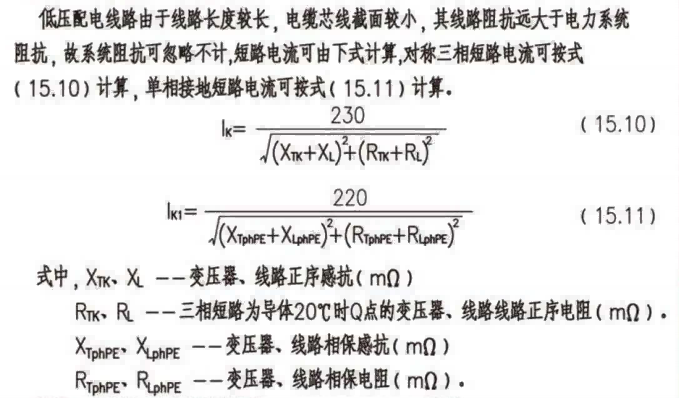 XL3 = mΩ6、三相短路電流計算、單相短路電流計算公式如下表所示: