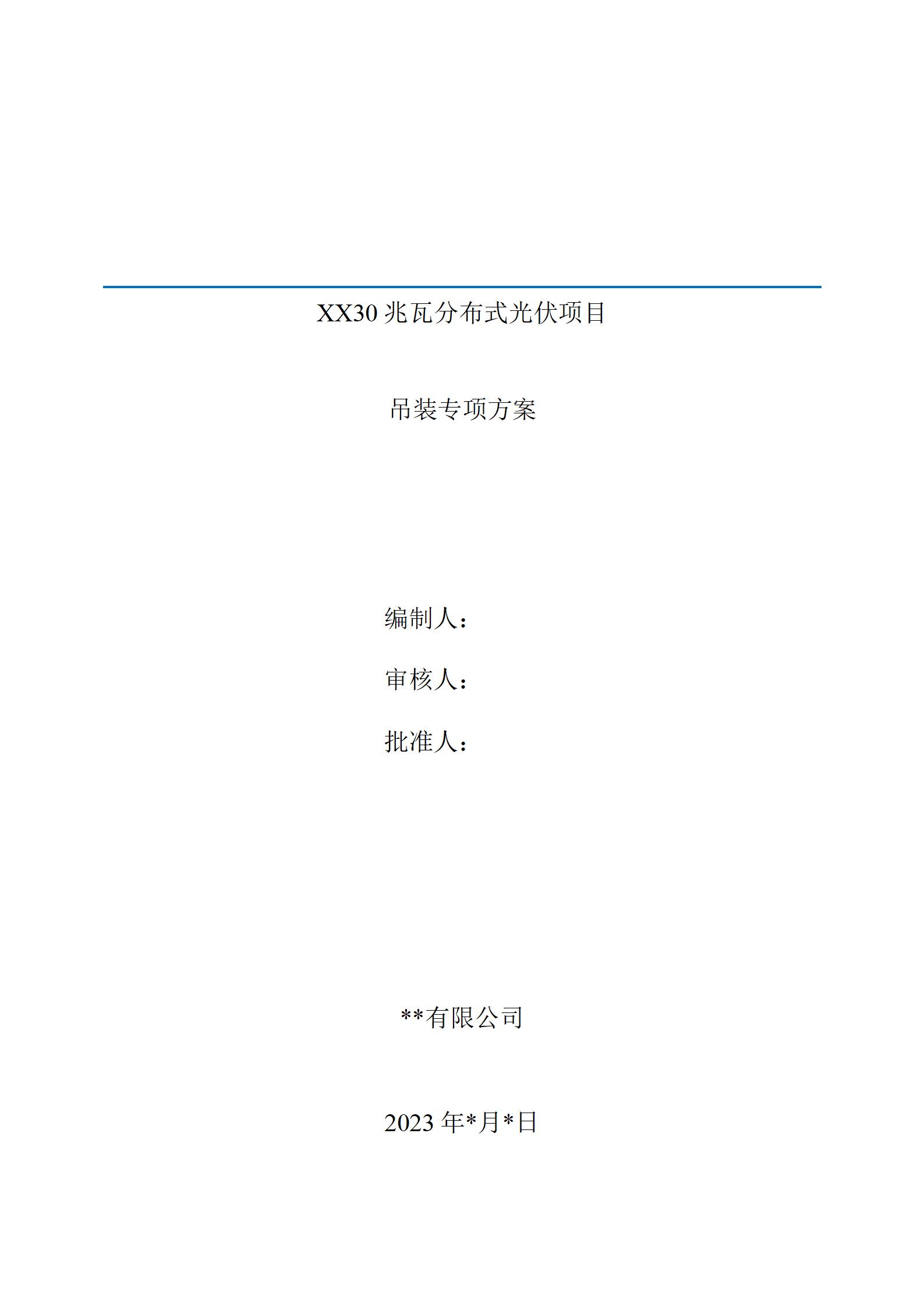 某30兆分布式光伏項目吊裝方案(含吊裝計算)(word)