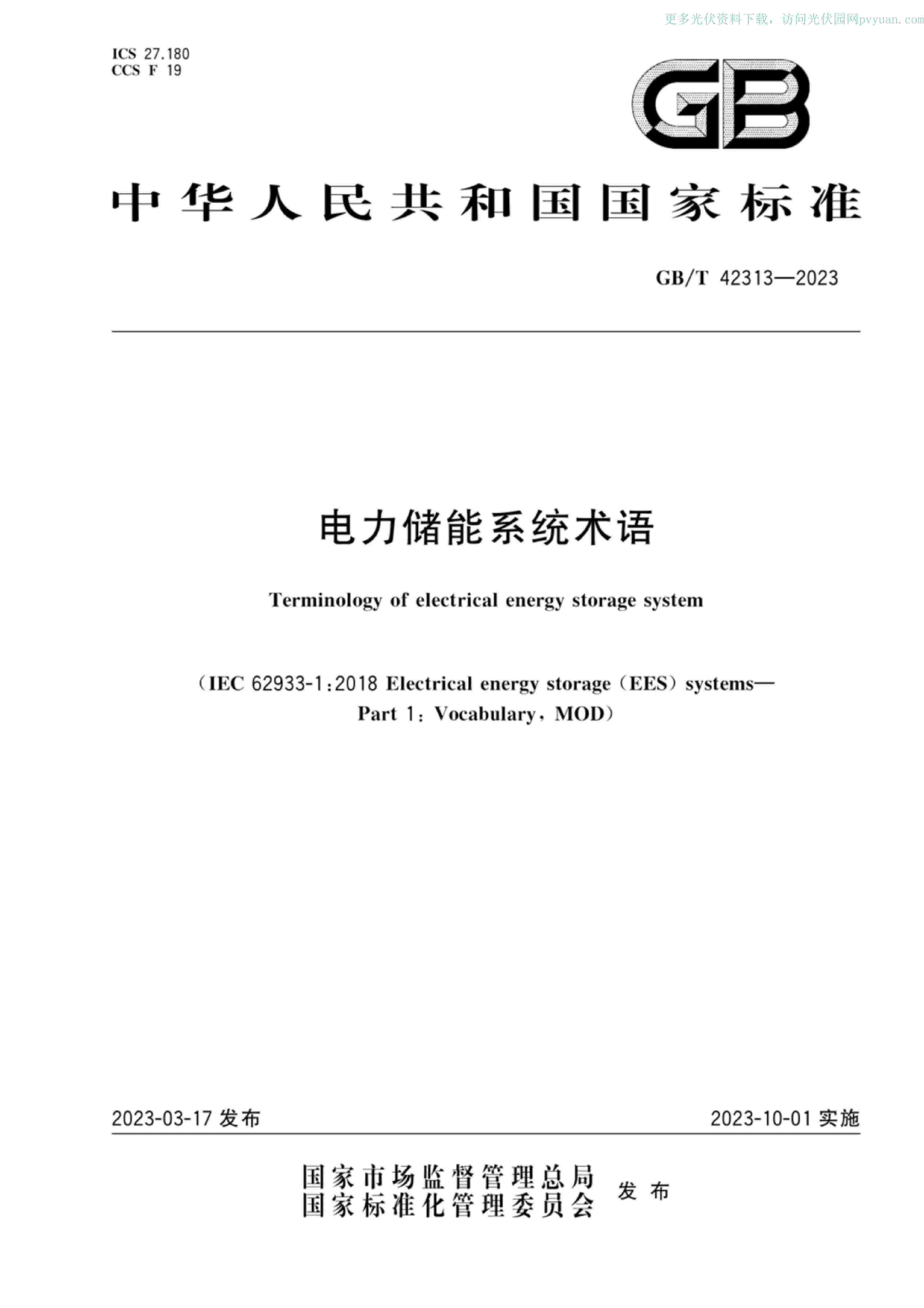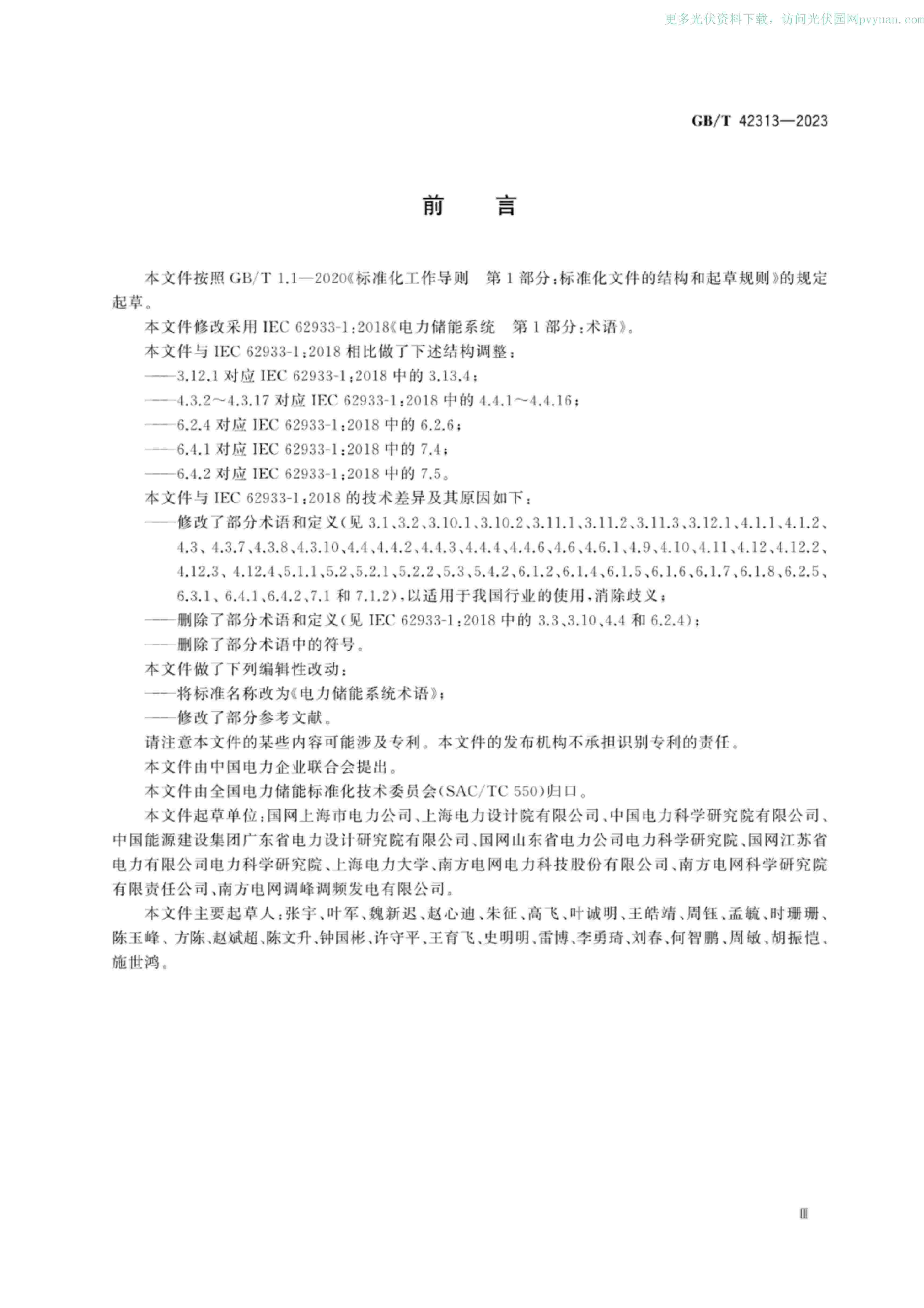 國家標準電力儲能系統(tǒng)術(shù)語GB /T 42313-2023 ,僅供學習和參考,請購買正版資料
