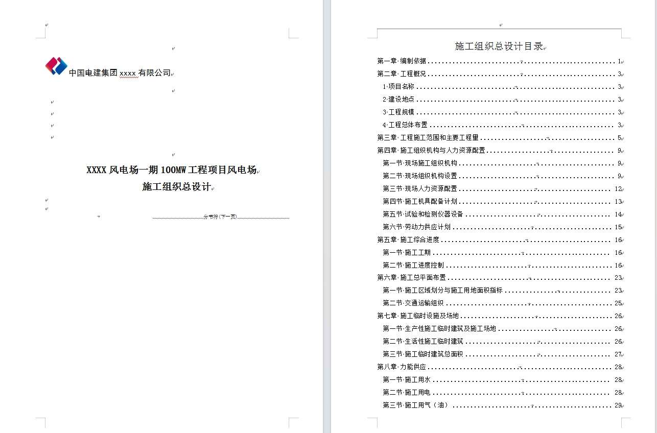 【施組方案】中國(guó)電建XX風(fēng)電場(chǎng)一期100MW工程項(xiàng)目風(fēng)電場(chǎng) 施工組織總設(shè)計(jì)