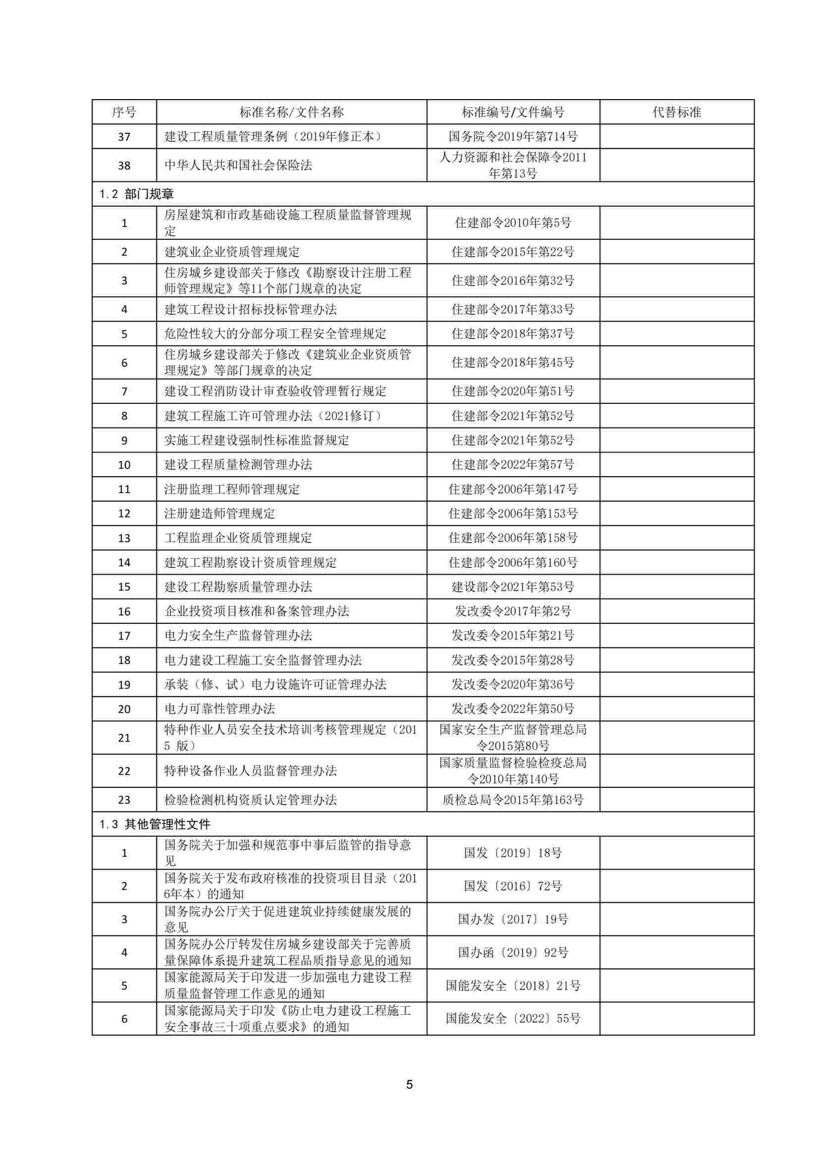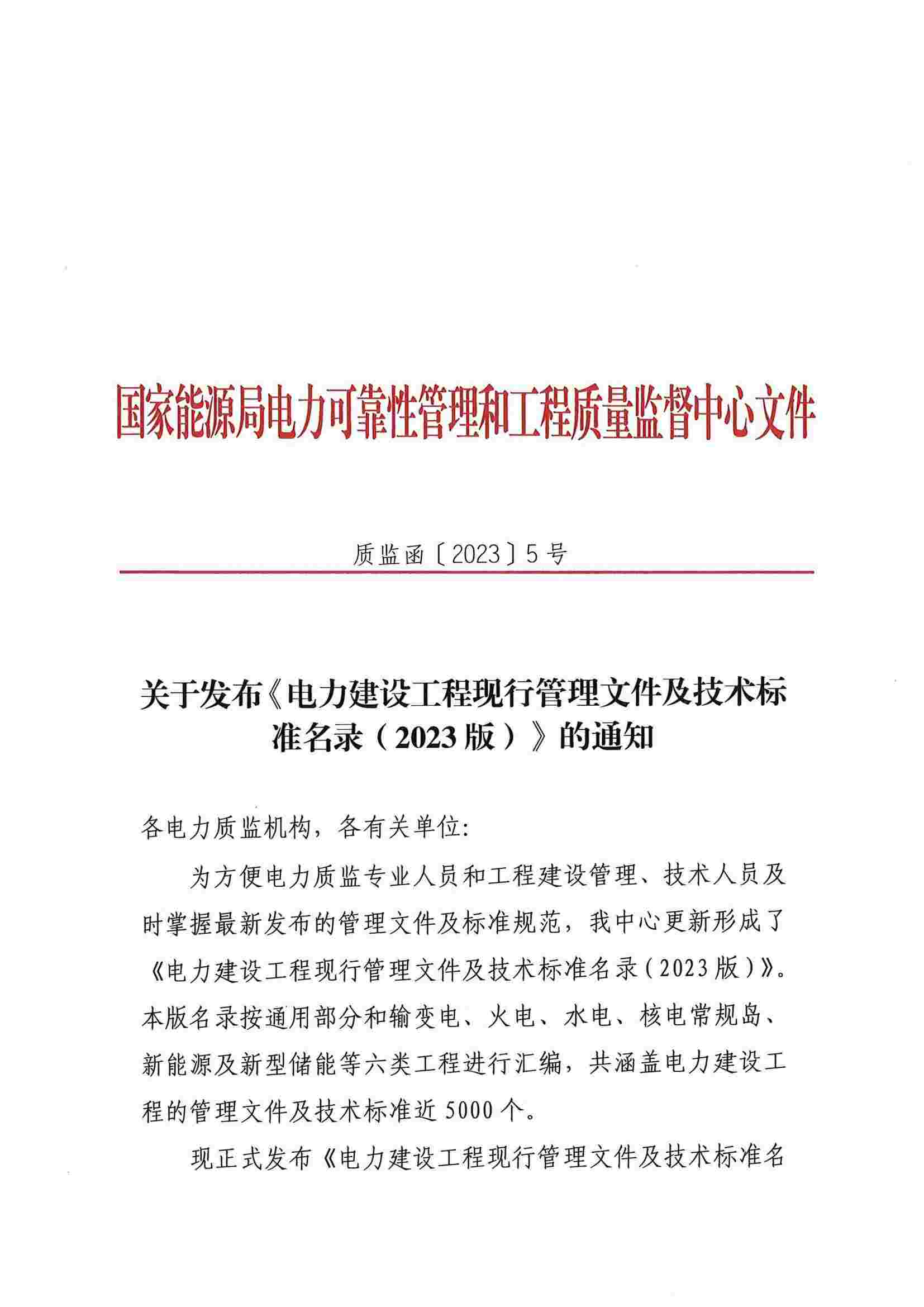 電力建設(shè)工程現(xiàn)行管理文件及技術(shù)標(biāo)準(zhǔn)名錄(2023版)【國(guó)家能源局頒布】