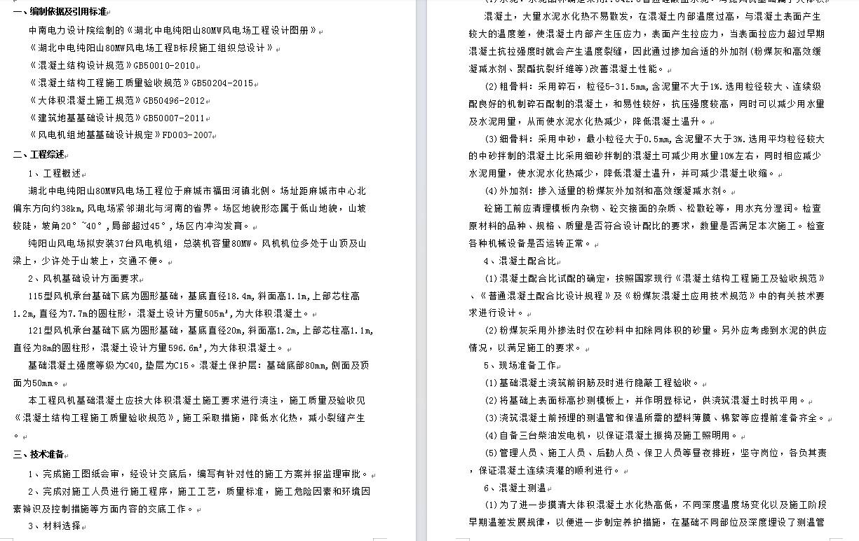 【word】某80兆瓦風(fēng)電項(xiàng)目塔基大體積混凝土施工方案