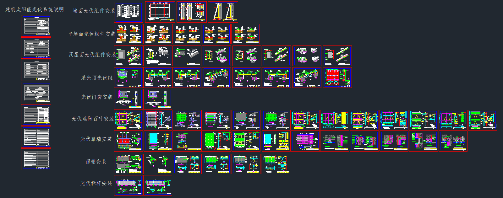 最新建筑+光伏設(shè)計圖集(dwg)包括雨棚/幕墻/欄桿/百葉/門窗等多種類型