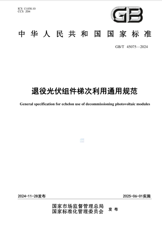 【規(guī)范】 退役光伏組件梯次利用通用規(guī)范GBT 45075-2024