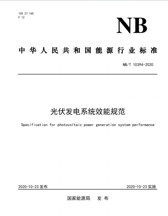 [規(guī)范]《光伏發(fā)電系統(tǒng)效能規(guī)范》10394-2020