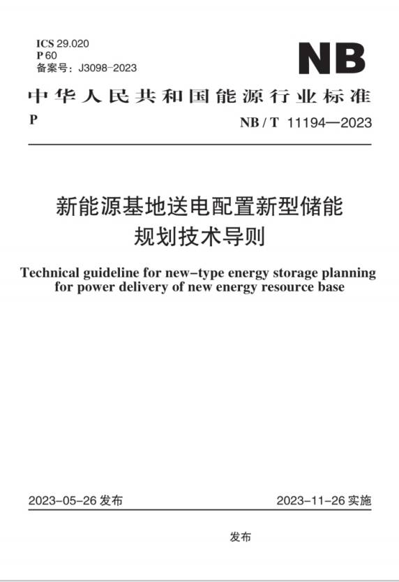 [規(guī)范]《新能源基地送電配置新型儲(chǔ)能規(guī)劃技術(shù)導(dǎo)則》NB_T 11194-2023