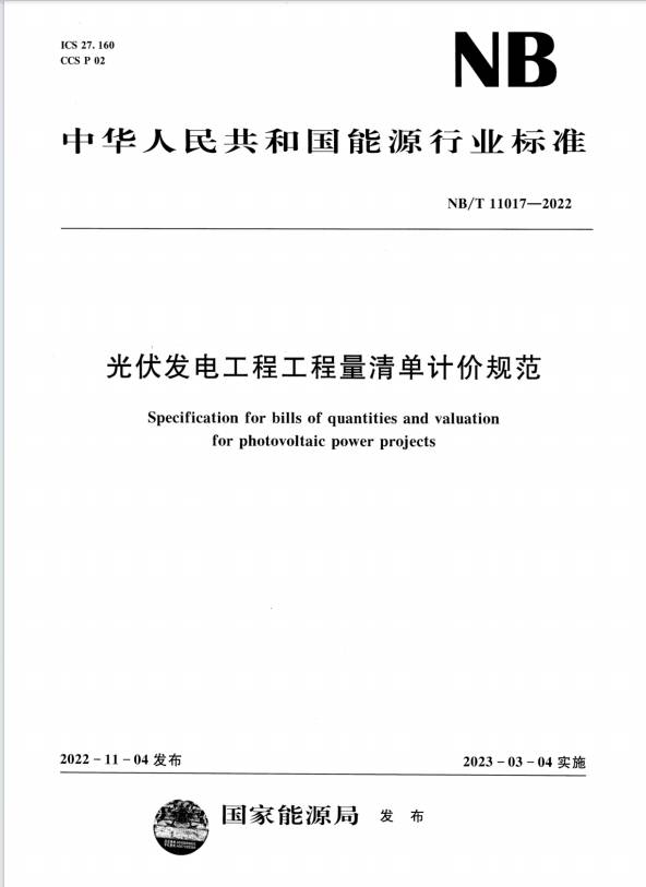 [規(guī)范]《光伏發(fā)電工程工程量清單計價規(guī)范》NB-T 11017-2022