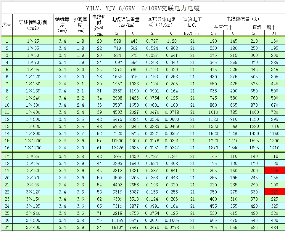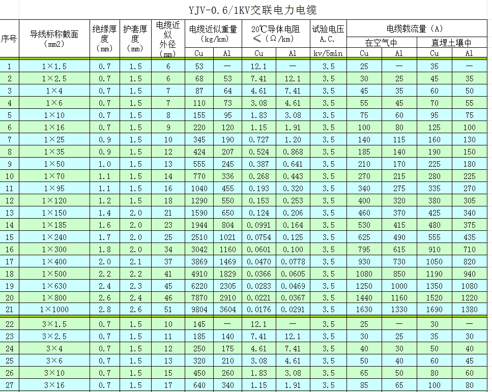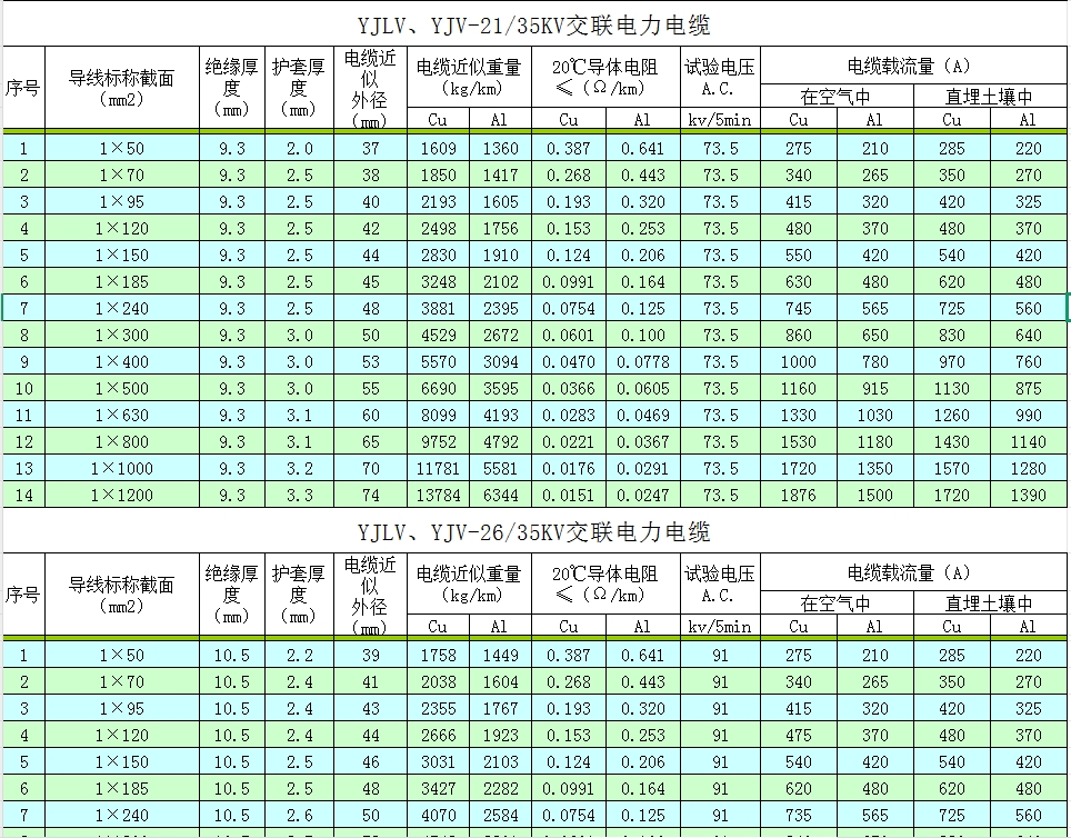 [excel]0.6~35KV交聯(lián)聚乙烯電纜參數(shù)表