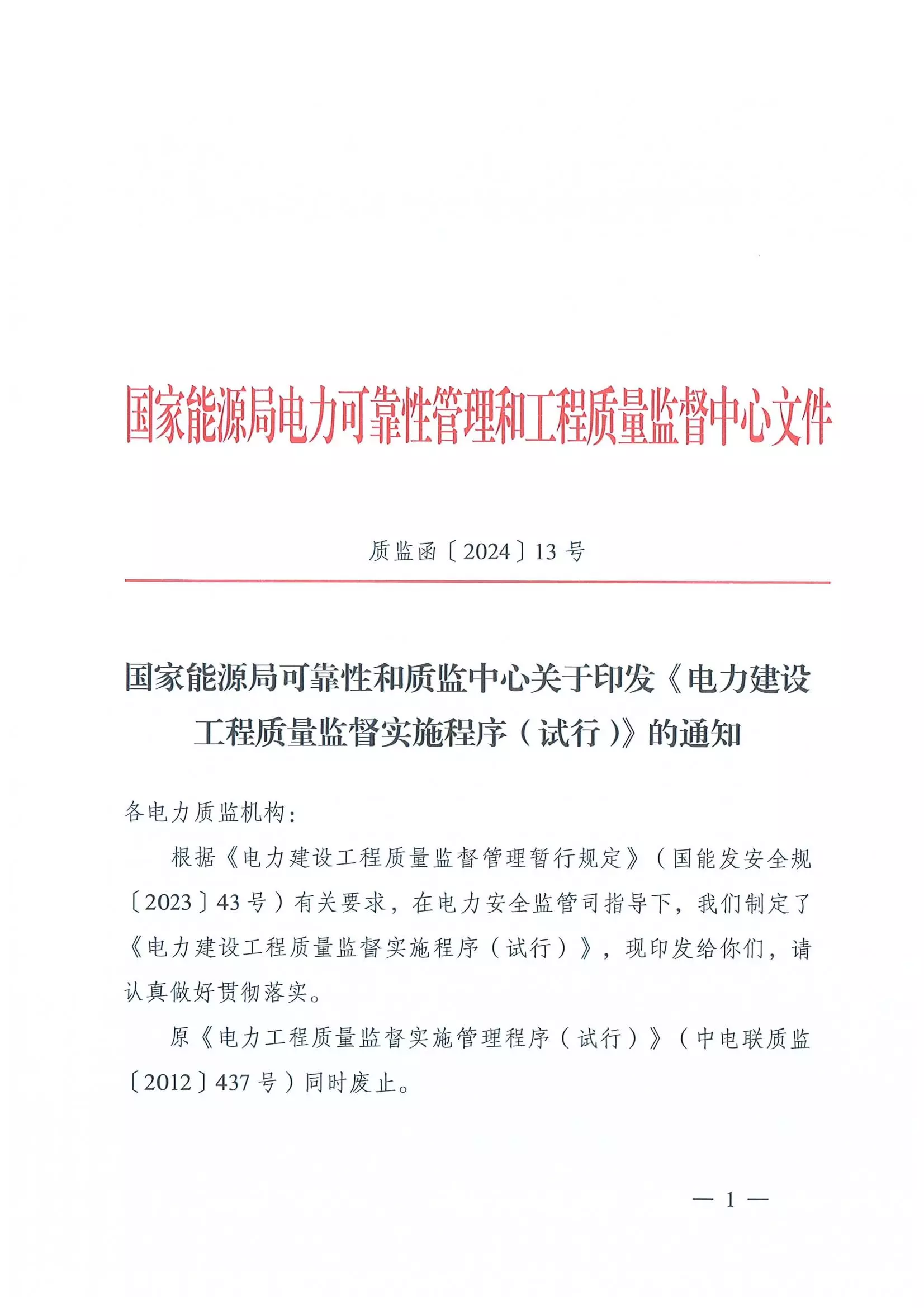 國(guó)家能源局-《電力建設(shè)工程質(zhì)量監(jiān)督實(shí)施程序(試行)》