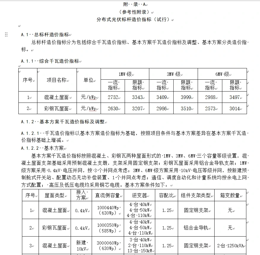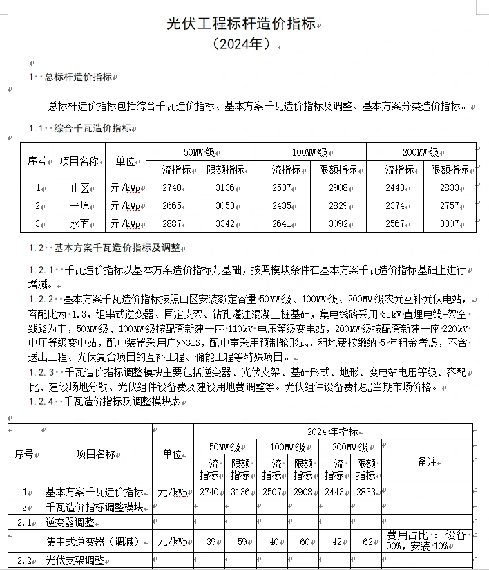 某央企光伏發(fā)電工程標(biāo)桿造價(jià)指標(biāo)(word)。僅供參考。