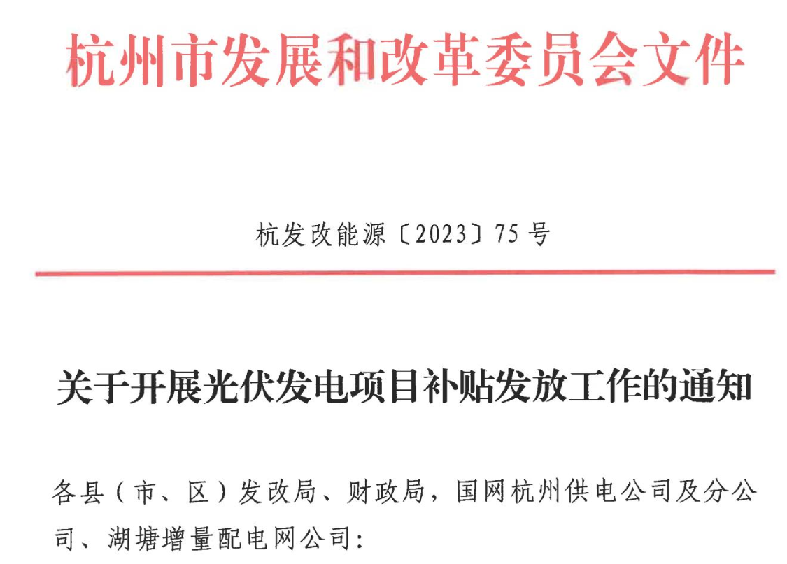 光伏園資源網(wǎng)獲悉,杭州發(fā)改委近期發(fā)布“關(guān)于印發(fā)《杭州市光伏發(fā)電項目補貼發(fā)放實施細則》(杭發(fā)改能源[2023]55號)的通知”,明確了杭州市分布式光伏補貼申請的要求,文件解讀如下: