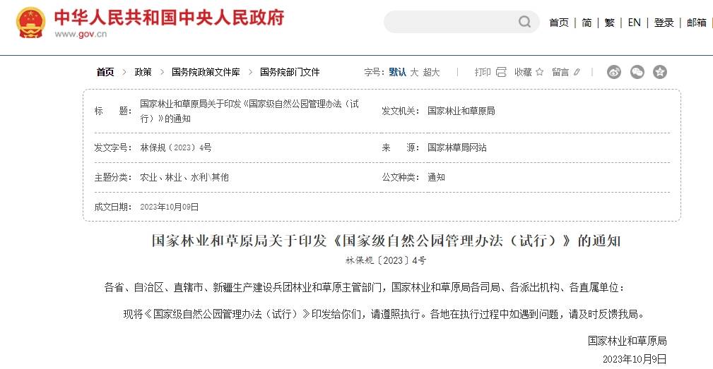 光伏園網(wǎng)站(www.uvhaut.com)獲悉,近日,國家林業(yè)和草原局印發(fā)《國家級自然公園管理辦法(試行)》。該辦法明確,在國家級自然公園內(nèi)嚴禁建設光伏及風電場。原文如下: