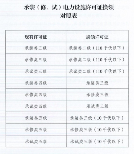 通知對(duì)承裝(修、試)電力設(shè)施許可證換證進(jìn)行了明確:
