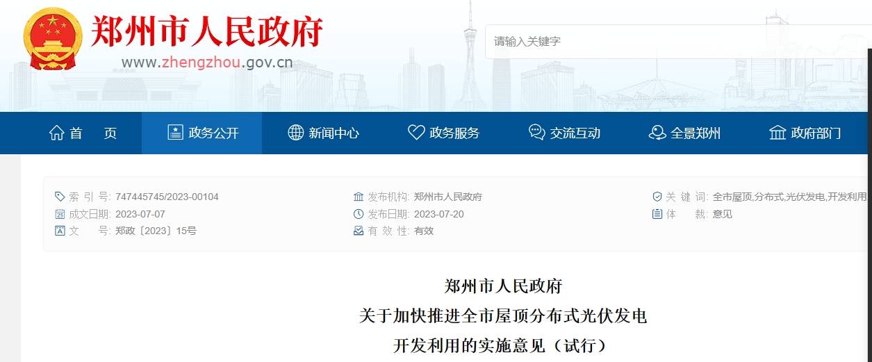 光伏園(www.uvhaut.com)獲悉,鄭州市人民政府發(fā)布《關(guān)于加快推進(jìn)全市屋頂分布式光伏發(fā)電開發(fā)利用的實施意見》(試行),部分章節(jié)摘要如下: