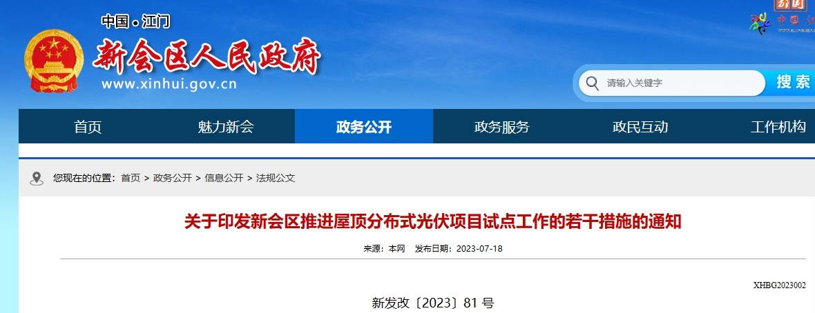 新會(huì)區(qū)新建屋頂光伏項(xiàng)目財(cái)政補(bǔ)貼實(shí)施細(xì)則