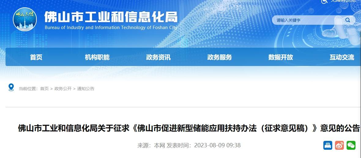 佛山市促進(jìn)新型儲能應(yīng)用扶持辦法