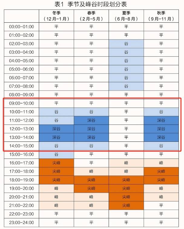 谷時(shí)段為10:00至15:00,其中,深谷時(shí)段為11:00至14:00。