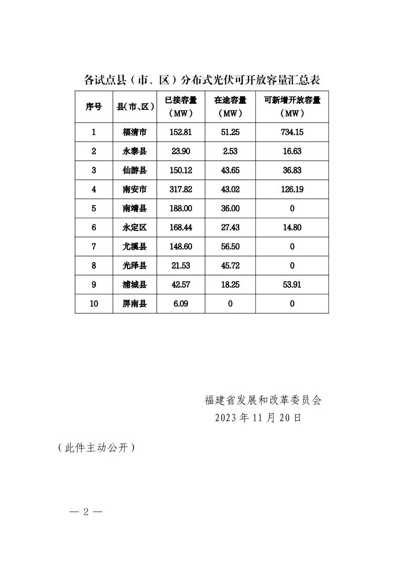 開(kāi)放982.51MW,4縣為0!最新福建試點(diǎn)縣分布式光伏接入承載力信息