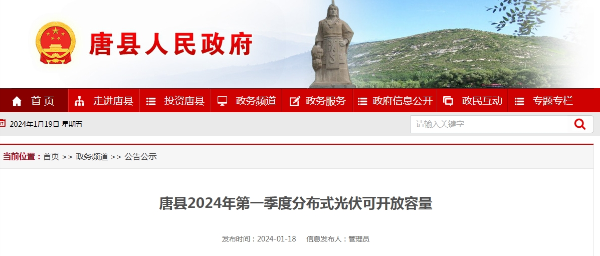 河北唐縣:2024年第一季度分布式光伏可開放容量信息發(fā)布