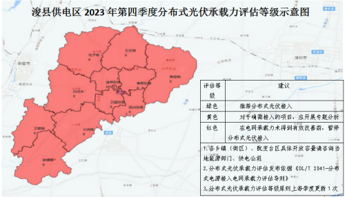 為提升分布式光伏消納水平,促進分布式光伏持續(xù)健康發(fā)展,根據(jù)《河南省發(fā)展和改革委員會關(guān)于促進分布式光伏發(fā)電健康可持續(xù)發(fā)展的通知》(豫發(fā)改能源〔2023〕545號)要求,國網(wǎng)河南省電力公司對浚縣電網(wǎng)分布式光伏承載能力進行了評估,現(xiàn)將??h供電區(qū)2023年第四季度分布式光伏承載力評估等級結(jié)果向社會發(fā)布。分布式光伏承載力評估等級結(jié)果原則上每季度更新1次。