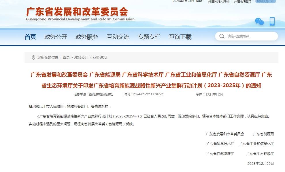 廣東省發(fā)展和改革委員會(huì) 廣東省能源局 廣東省科學(xué)技術(shù)廳 廣東省工業(yè)和信息化廳 廣東省自然資源廳 廣東省生態(tài)環(huán)境廳關(guān)于印發(fā)廣東省培育新能源戰(zhàn)略性新興產(chǎn)業(yè)集群行動(dòng)計(jì)劃(2023-2025年)的通知