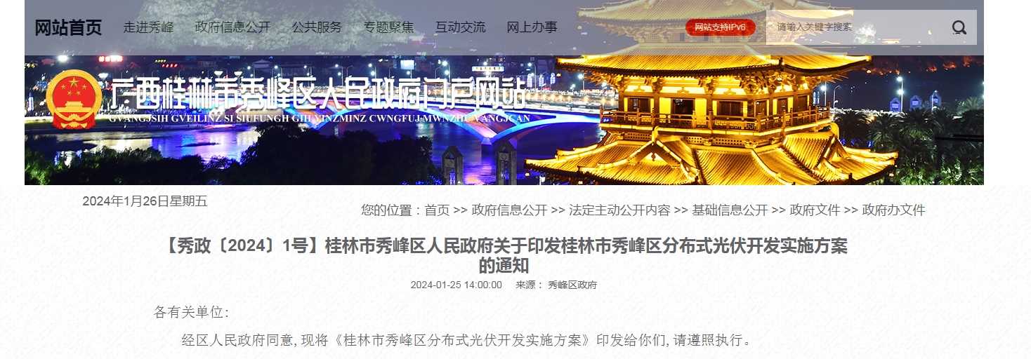 廣西桂林市秀峰區(qū)分布式光伏開發(fā)實(shí)施方案