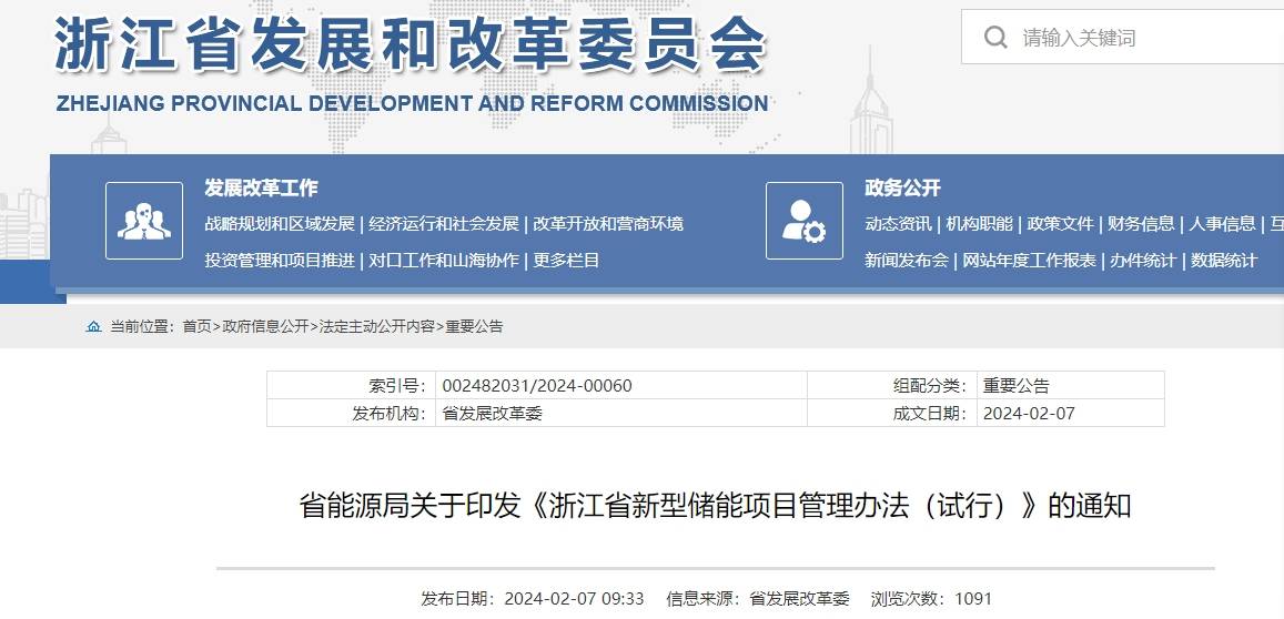 2024年2月7日浙江省能源局印發(fā)《浙江省新型儲能項目管理辦法(試行)》的通知,辦法對儲能項目的建設(shè)備案、并網(wǎng)驗收、運行管理以及安全管理等作出了詳細(xì)的規(guī)定。于2024年2月5日起實施。文章核心要點如下: