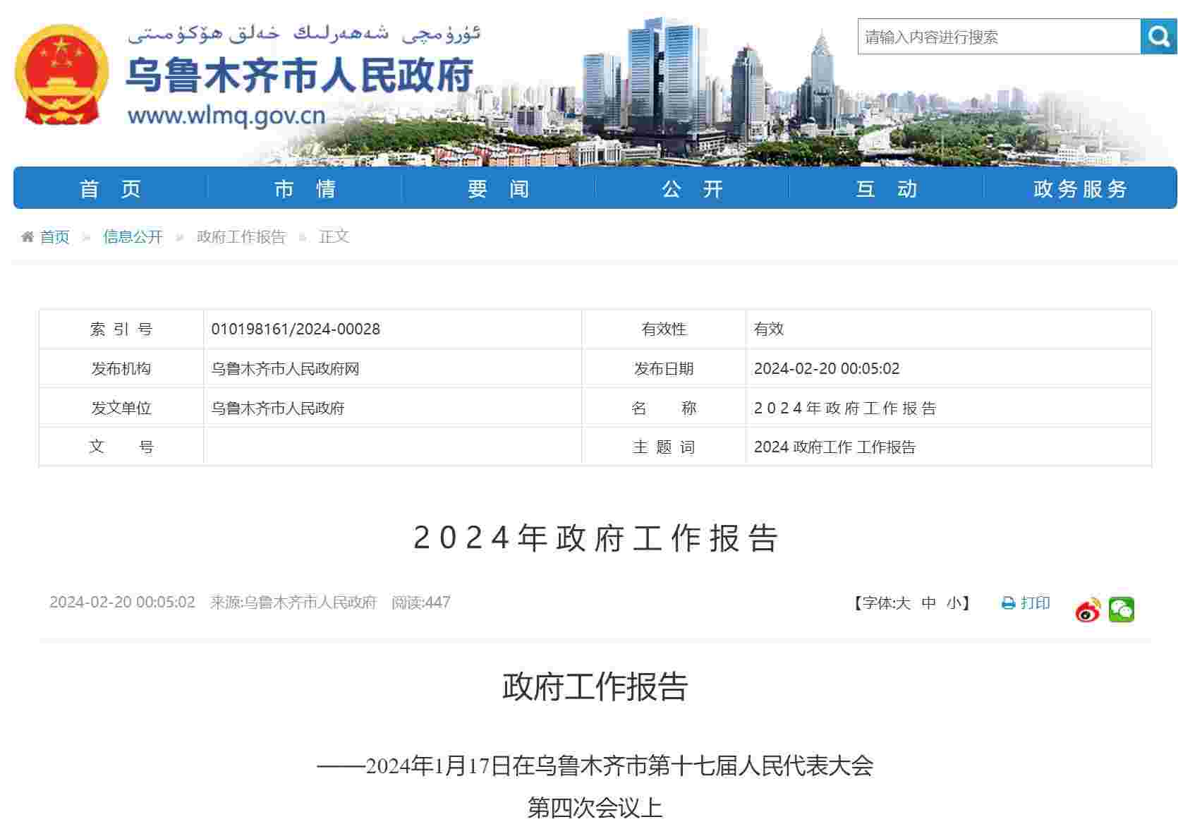 2月20日,新疆烏魯木齊市人民政府發(fā)布《2024年政府工作報告》,報告指出,2024年加速發(fā)展新能源產(chǎn)業(yè),依托“南風北光”資源,堅持源網(wǎng)荷儲一體化發(fā)展,加快推進中石油北部沙漠200萬千瓦光伏、達坂城金工新能源85萬千瓦風電等項目建設(shè),新增裝機1217萬千瓦。