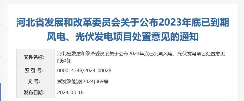 光伏園獲悉,近期河北省發(fā)展和改革委員會(huì)發(fā)布《關(guān)于公布2023年底已到期風(fēng)電、光伏發(fā)電項(xiàng)目處置意見的通知》,對轄區(qū)內(nèi)約10GW的風(fēng)電、光伏項(xiàng)目指標(biāo)進(jìn)行了取消或者調(diào)整。