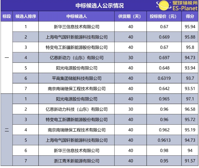 標段一投標報價區(qū)間在0.6319元/Wh-0.697元/Wh,入圍均價為0.66元/Wh;