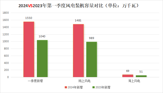 2024年一季度,全國(guó)風(fēng)電新增并網(wǎng)容量1550萬千瓦,其中陸上風(fēng)電1481萬千瓦,海上風(fēng)電69萬千瓦。