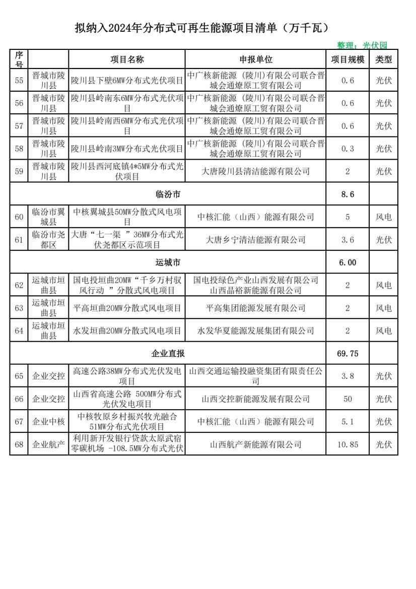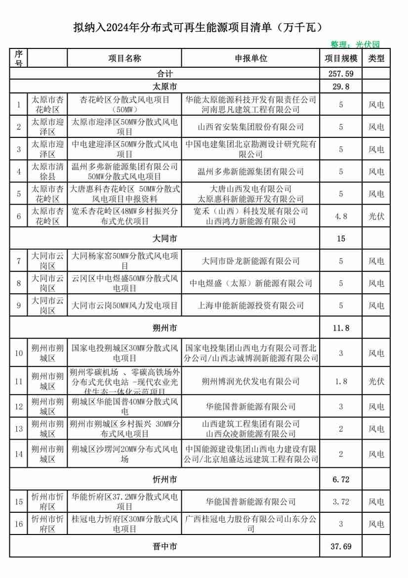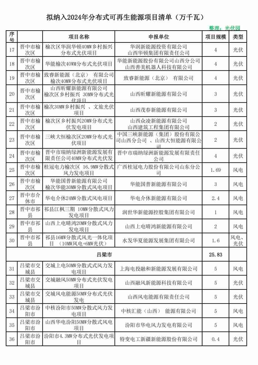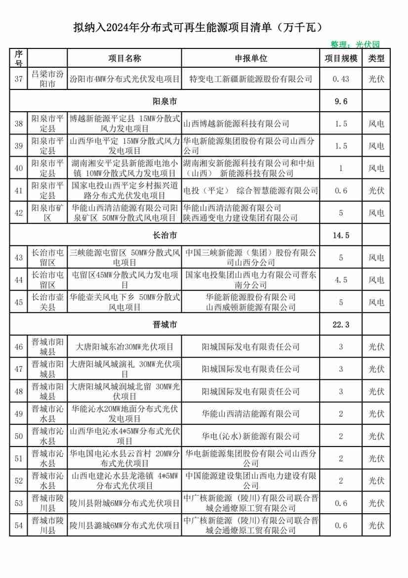 2.58GW,山西省2024年分布式可再生能源項目公示