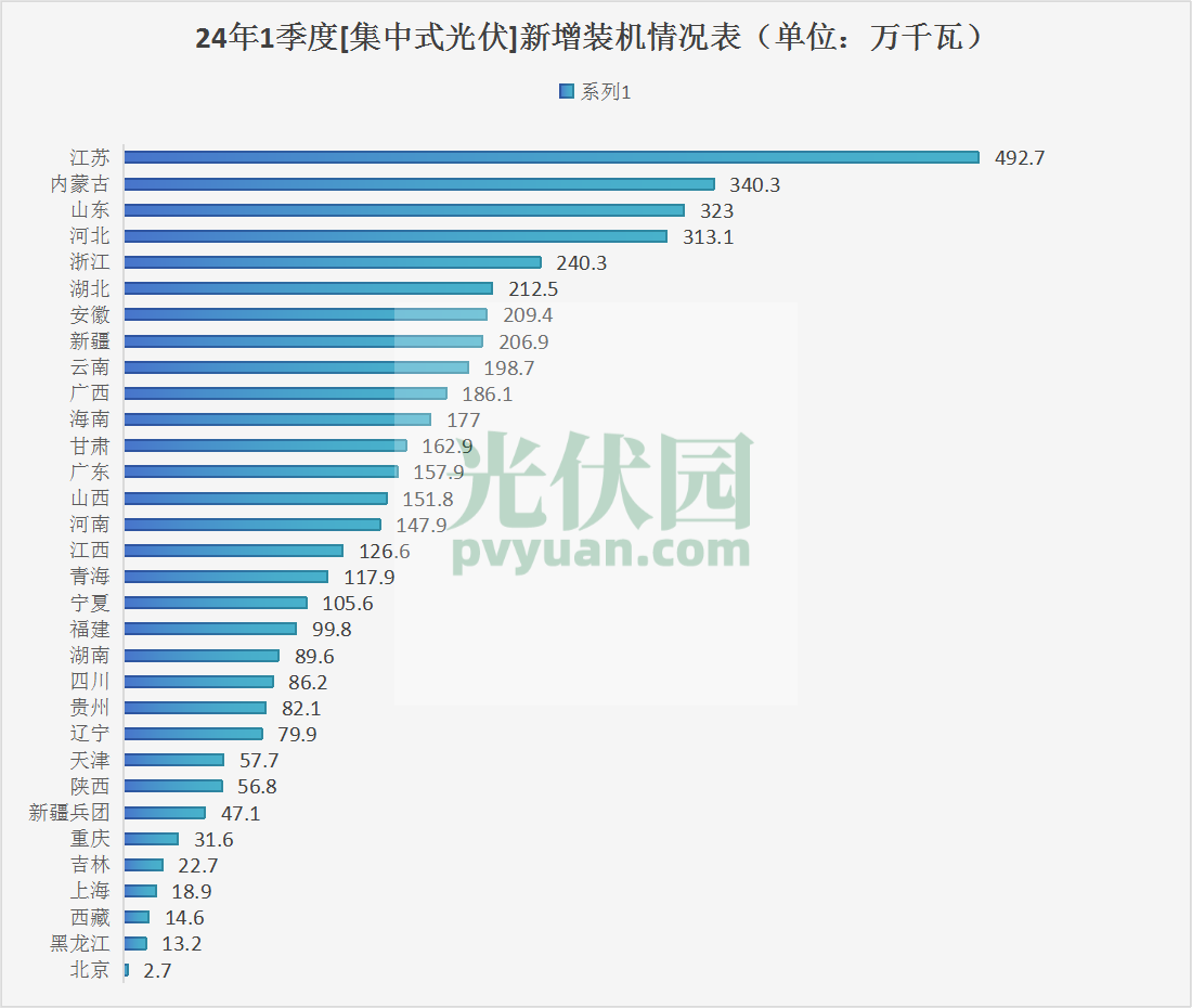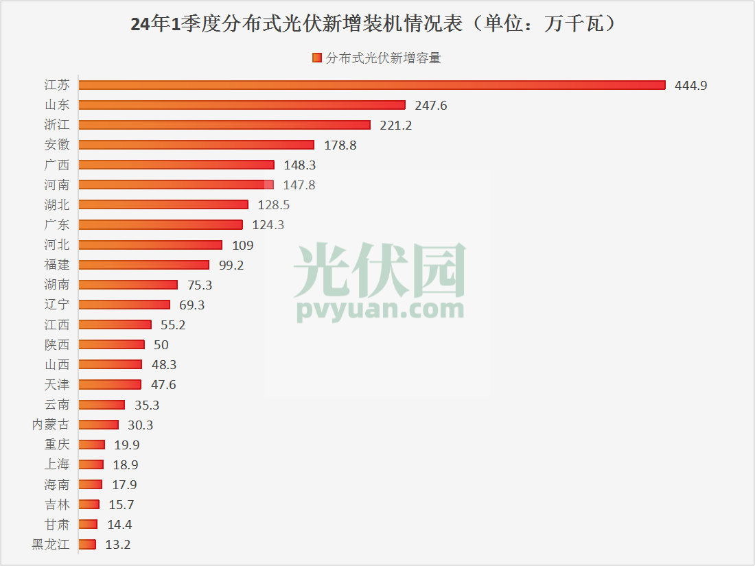 2024年第一季度光伏新增容量公布,分布式前五:江蘇、山東、浙江、安徽、廣西