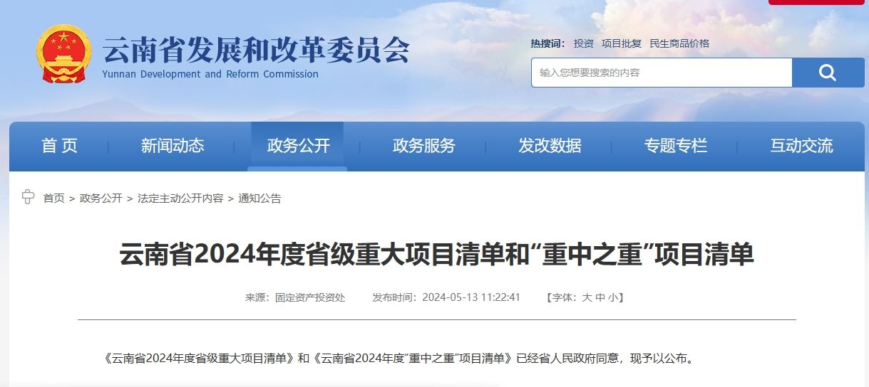 云南發(fā)布2024年重點項目清單及“重中之重”清單