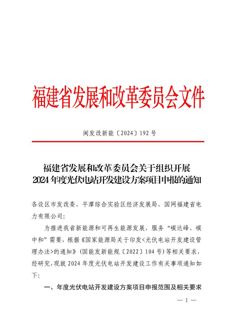 福建省發(fā)展和改革委員會(huì)關(guān)于組織開展2024年度光伏電站開發(fā)建設(shè)方案項(xiàng)目申報(bào)的通知