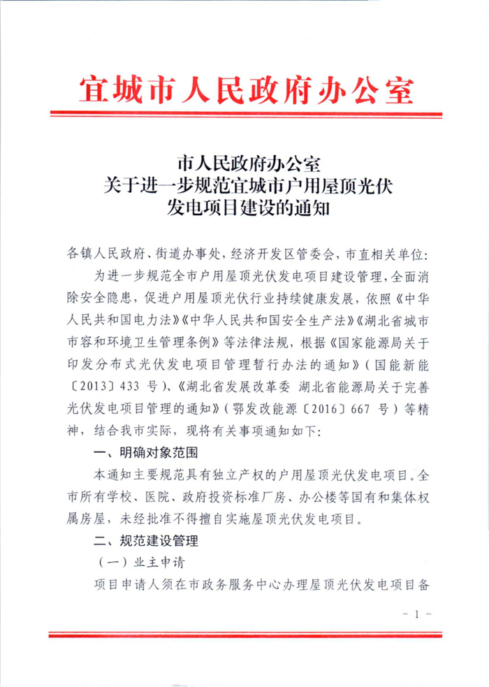 這份文件是湖北省宜州市發(fā)布的《市人民政府辦公室關(guān)于進(jìn)一步規(guī)范宜城市戶用屋頂光伏發(fā)電項(xiàng)目建設(shè)的通知》,文件是這樣描述的:本通知主要規(guī)范具有獨(dú)立產(chǎn)權(quán)的戶用屋頂光伏發(fā)電項(xiàng)目。全市所有學(xué)校、醫(yī)院、政府投資標(biāo)準(zhǔn)廠房、辦公樓等國(guó)有和集體權(quán)屬房屋,未經(jīng)批準(zhǔn)不得擅自實(shí)施屋頂光伏發(fā)電項(xiàng)目。請(qǐng)問哪個(gè)地方的分布式光伏項(xiàng)目不需要備案批準(zhǔn),就可以直接開干(原則上如此)?只是政府文件把這句話說的更明確了,哪些“先上車后買票”的行為走不通了,并不是說不讓買票上車了!