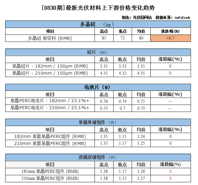 【0830期】最新光伏材料價格:上游持續(xù)上揚,組件漲價動力不足